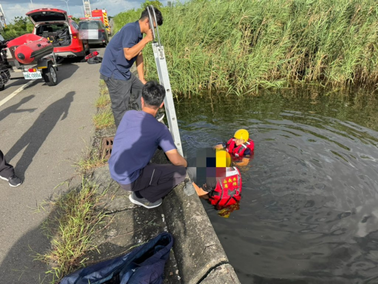 消防隊員發現溺水72歲老翁已經溺斃。翻攝…