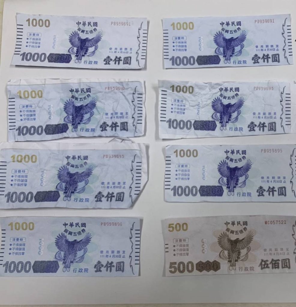 10月8日政府才正式發放五倍券,樹林就發生五倍券偽造案,一名婦人14日持一張偽造1000元振興五倍券至雜貨店內消費,遭店家發現該卷疑遭偽造,立即報警處置。