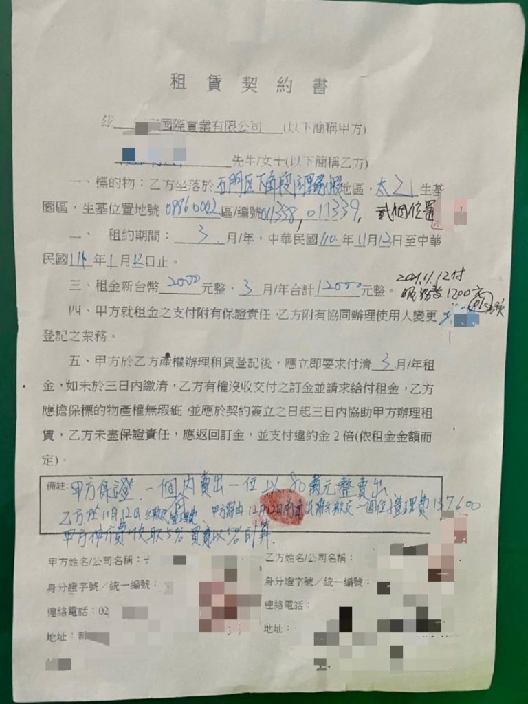 臺北市內湖分局東湖派出所於日前接獲民眾報稱:遭詐騙集團以誘騙承租生基塔位方式得手新臺幣3萬8,800元。經查犯嫌佯稱OO國際實業有限公司向被害人承租五處生基位,遂騙其簽立租賃契約書,並保證優於市價賣出獲利。惟契約成立後即向被害人索取管理費用總計27萬5,200元,被害人交付頭款3萬8,000元後驚覺有異,遂通報警方協助,內湖分局獲報後立即成立專案小組,分析比對犯嫌詐騙手段慣性。