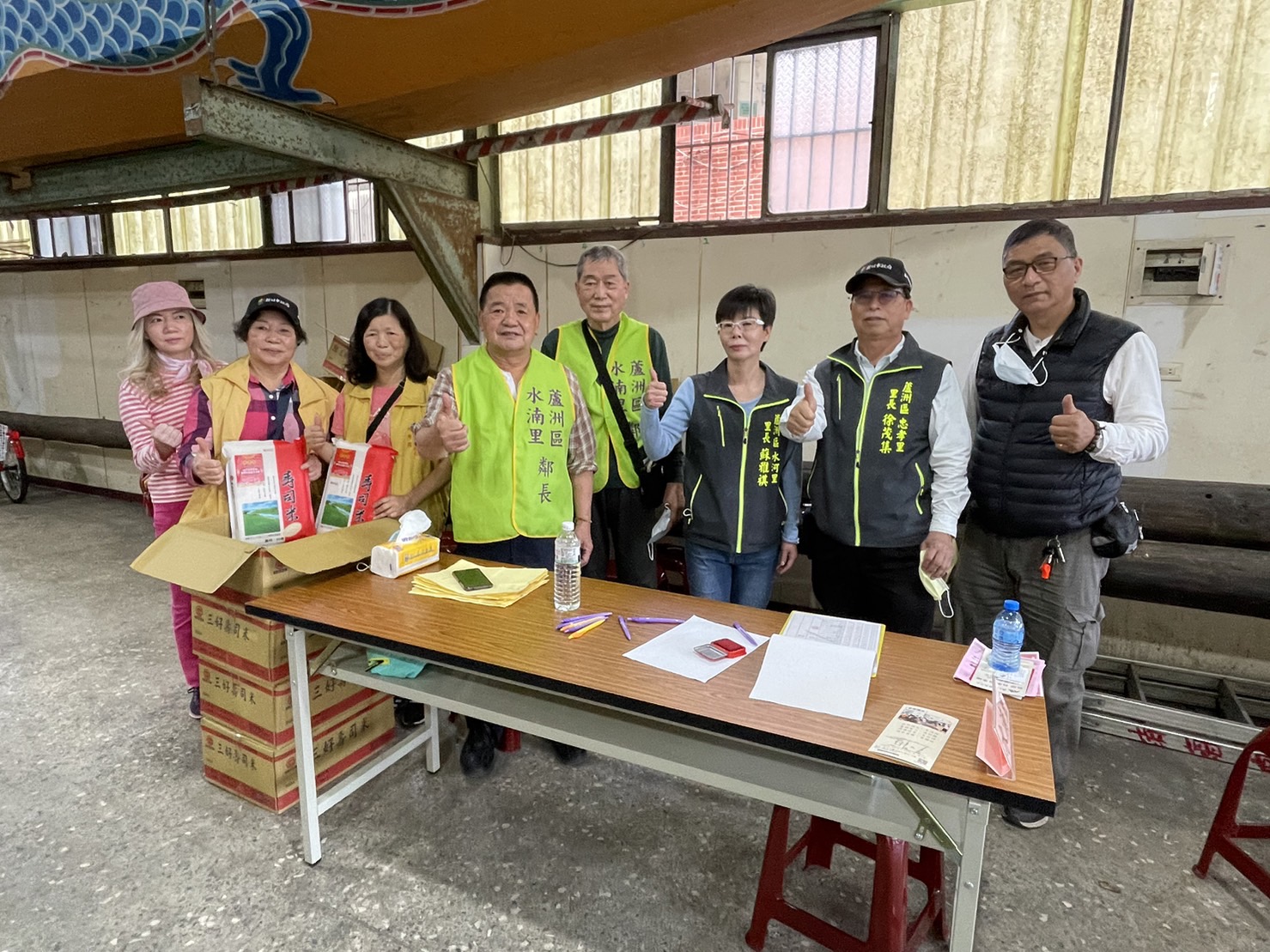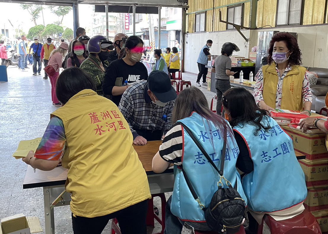 這項水河里、忠孝里、水湳里 聯合舉辦發送物資活動,是在下午2時正式開始核對身分證明,為近300名到場登記申領的弱勢族群發送三好米或壽司米等台灣本土優質米,協助紓解生活壓力。經常舉辦南巡進香及遶境活動的蘆洲明台府也特別熱情參與協辦。為感謝所有參與協助的志工,主辦單位蘆洲區水河關懷協會,現場還特別頒發感謝狀,表揚志工們的善心付出。