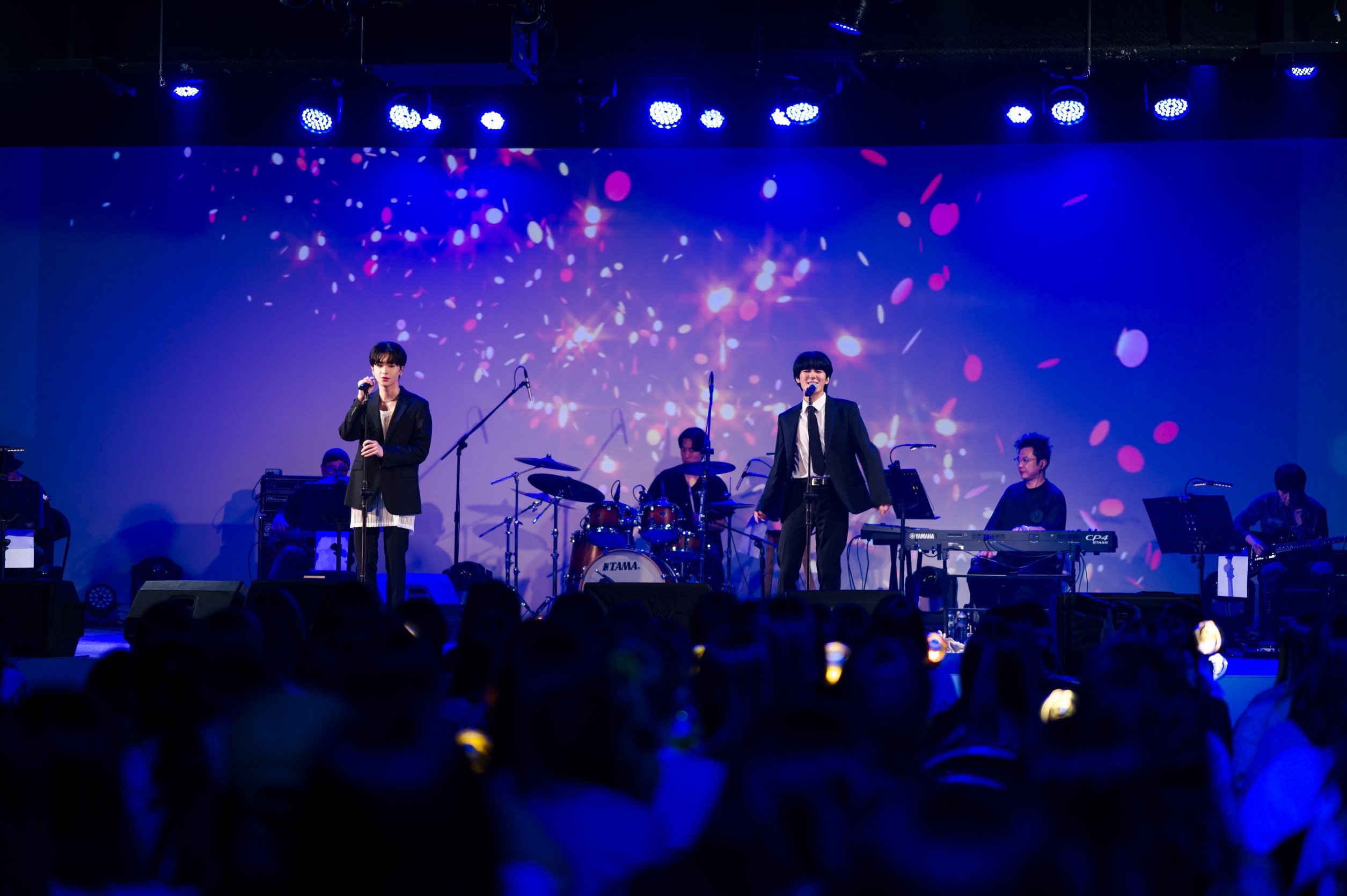 而擁有“撒嬌自動販賣機”稱號的李東烈也不遑多讓,表演MAN IN LOVE時重現BOYS PLANET的經典場面“咬咬愛心”,瘋狂的視覺效果讓粉絲們陷入瘋狂、尖叫不已。此時李歡喜也不甘示弱,帶來自己新發明的狗狗愛心,可愛又有創意的舉動讓現場笑聲連連。安可曲時兩人為了更貼近粉絲也走到台下跟粉絲握手擊掌,一連串的寵粉舉動展現了兩人獨有的魅力。