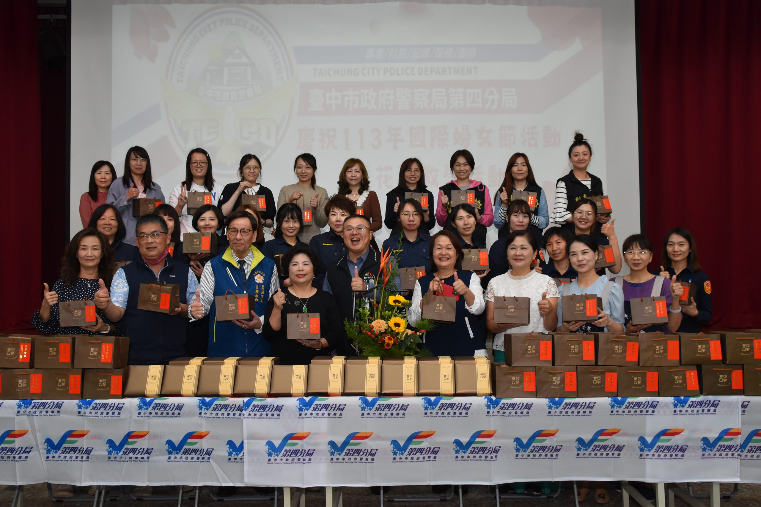 臺中市政府警察局第四分局為響應3月8日國際婦女節,中市警四分局長李建興與第四警友辦事處主任鄭永和特別於昨(5)日在中市警四分局6樓安排一場盛大的手作花藝活動,會場排滿新鮮花材,近30位警花報到,人手一只花器,在臺中市中華花藝推廣協會榮譽理事長黃惠婷指導下,從介紹花種類品種、修剪花枝、插花要領技巧教學,加上現場輕柔古樸音樂播放,讓人體會「慢活」感覺,透過花藝創作,使警花們暫時忘卻工作中所帶來的緊繃感,在互動交流的過程中學會將壓力釋放,每件完成的作品各有不同的特色美感,這另類的拈花惹草展現警花動靜皆宜的一面,會後贈上轄內臺中女子監獄手工巧克力,吃在嘴裡甜在心裡,成為最甜蜜的38婦女節。