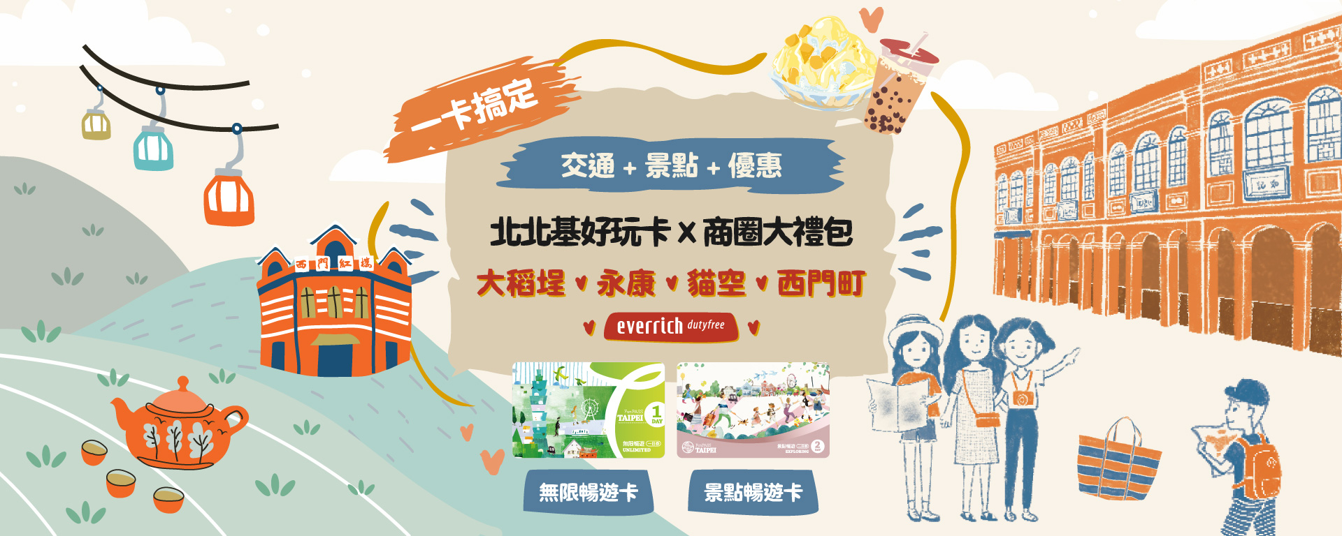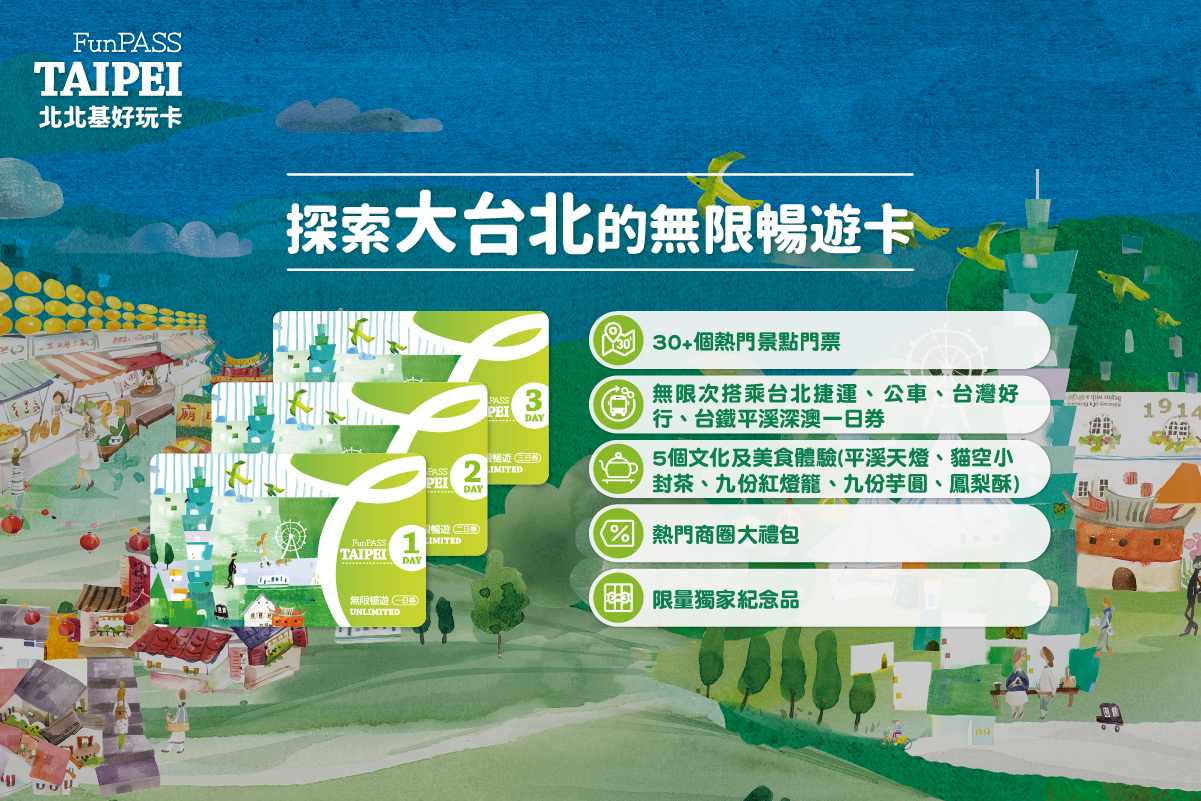 觀傳局介紹,北北基好玩卡「無限暢遊卡」,可不限次數搭乘臺北捷運、5條「台灣好行」路線及北北基三市的公車,並享有北北基熱門景點快速通關,減省旅費也省去排隊買票的時間。