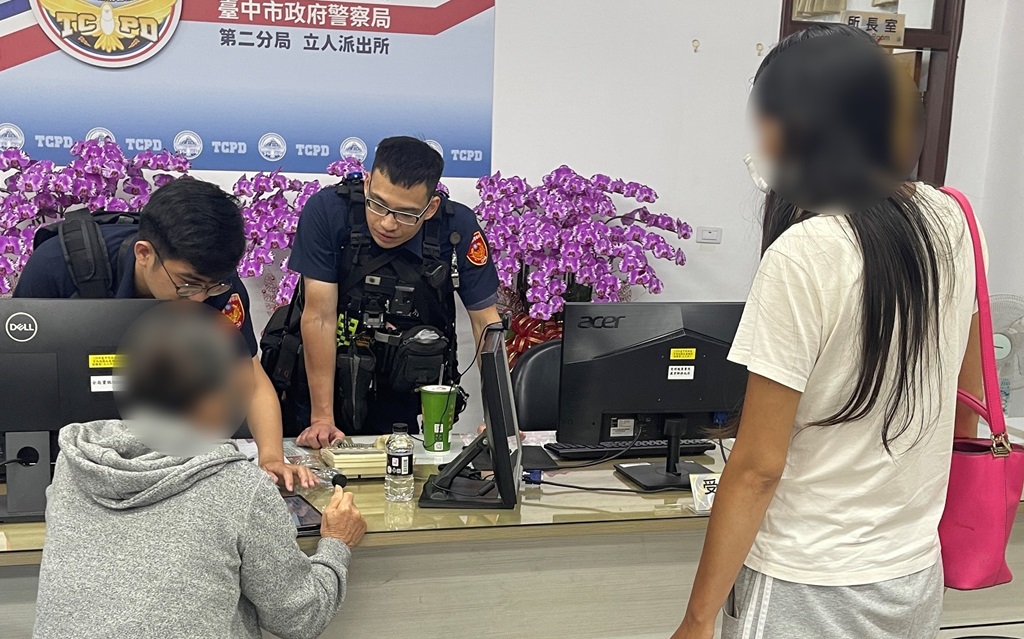 一名70歲白髮蒼蒼的黃女士在日前深夜一點多,步履蹣跚地走進臺中市政府警察局第二分局立人派出所,求助於員警尋找自己已失踪一天的女兒。黃女士表示,女兒患有精神疾病,於前日清晨6時獨自騎乘機車離家,此後便音訊全無,由於她自己沒有交通工具,只好整日在家附近的路口苦苦等待女兒的歸來,但都沒有看到愛女的蹤影,擔心女兒發生意外,只好向警察求助。