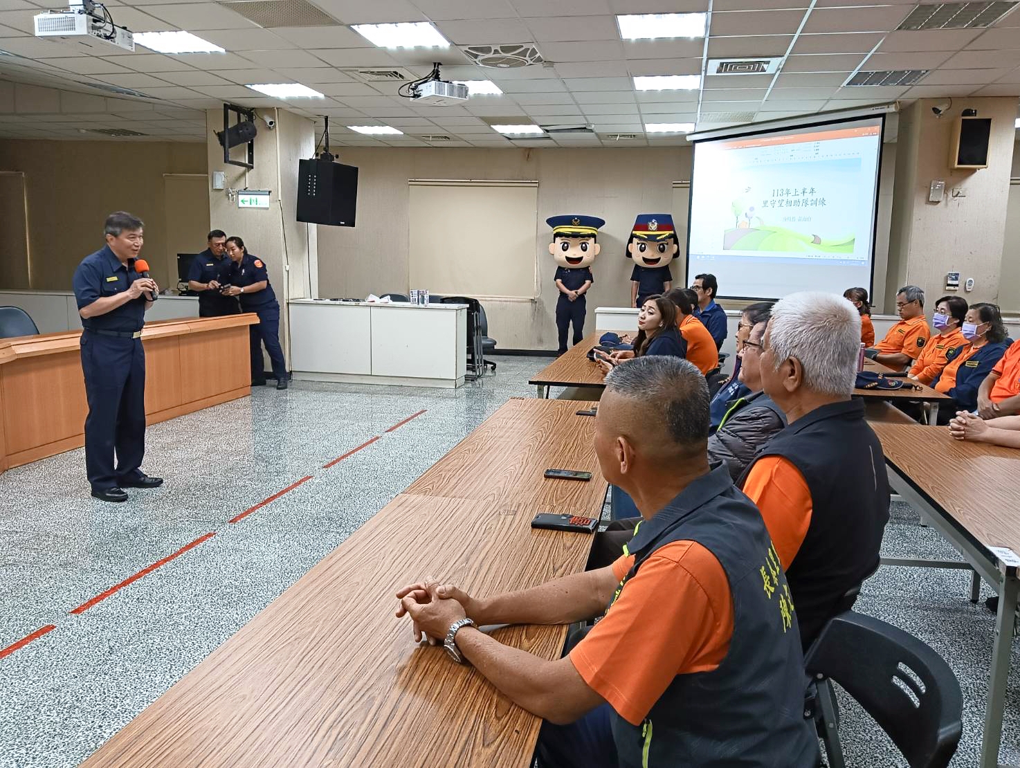 三重分局今(2)日辦理「113年上半年度公寓大廈、社區、里守望相助組織(管理)人員訓練」,召訓對象為守望相助隊員,透過三重區86里的守望相助隊共2572位隊員合作,於鄰里間穿梭執行巡邏守望工作。藉由此次講習訓練,讓每位執勤人員學習新的執勤觀念技能,如同警察的眼睛及手、腳,成為警方最得力的助手,進而發揮保護民眾安全,並達到共同維護社會治安的功能。