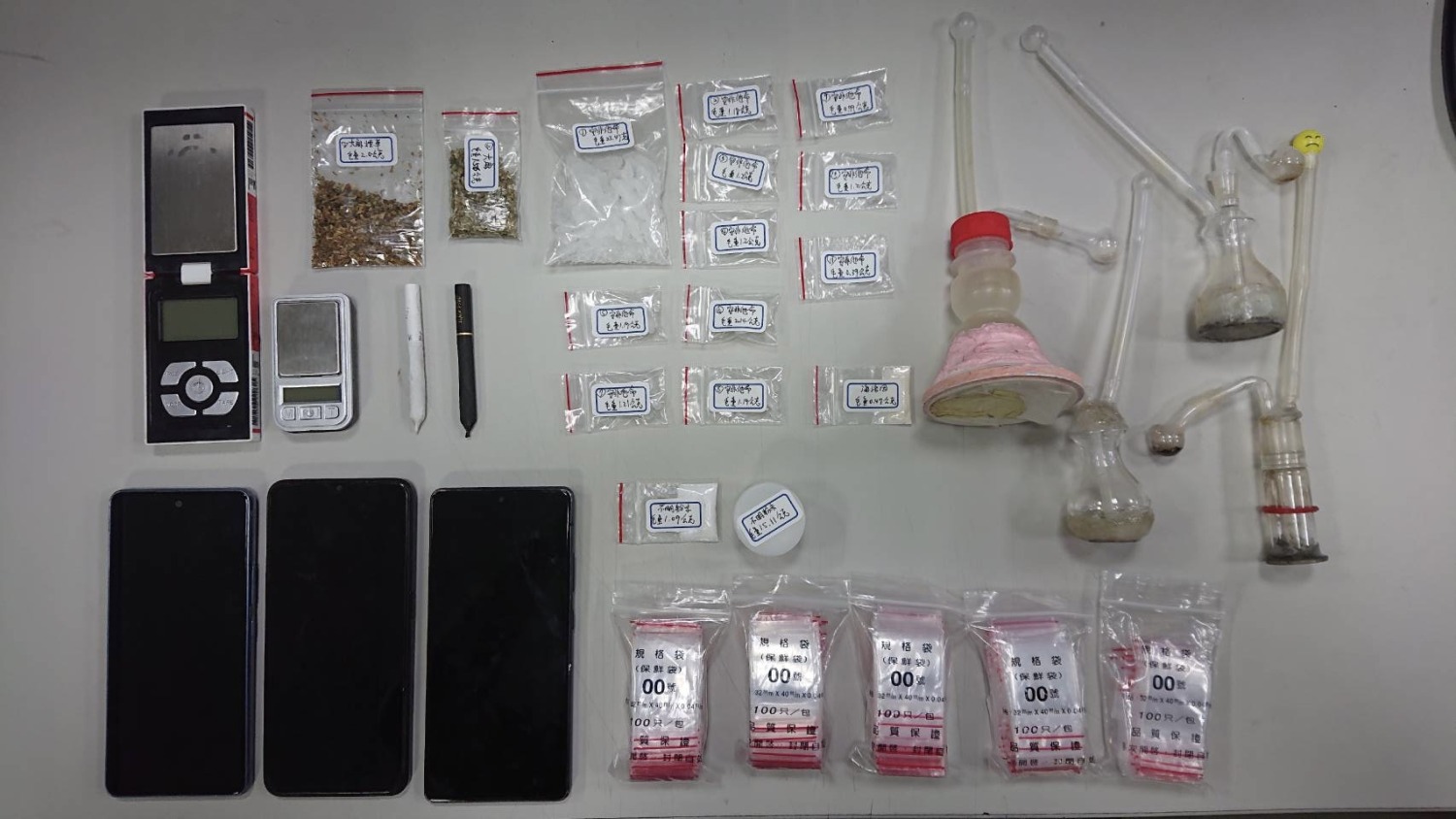 國道公路警察局刑事警察大隊日前拂曉出擊,在新北市蘆洲區某民宅出租套房查獲以梁姓、蘇姓及林姓三人為首之販毒集團。