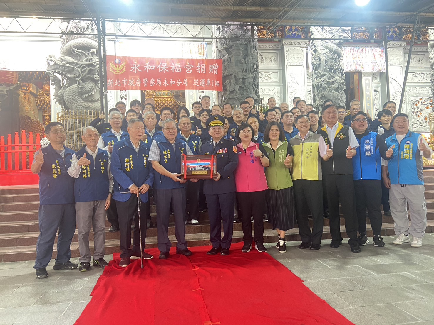 永和保福宮今(29)日,於廟埕前捐贈巡邏車1輛予新北市政府警察局永和分局,在立法委員林德福、新北市議會副議長陳鴻源、市議員連斐璠、市議員許昭興及永和區區長莊茂坤觀禮見證下,主任委員陳水生將巡邏車捐贈給永和分局,由分局長王耀輝代表受贈,並回贈感謝狀及巡邏車模型車1輛,典禮簡單隆重。