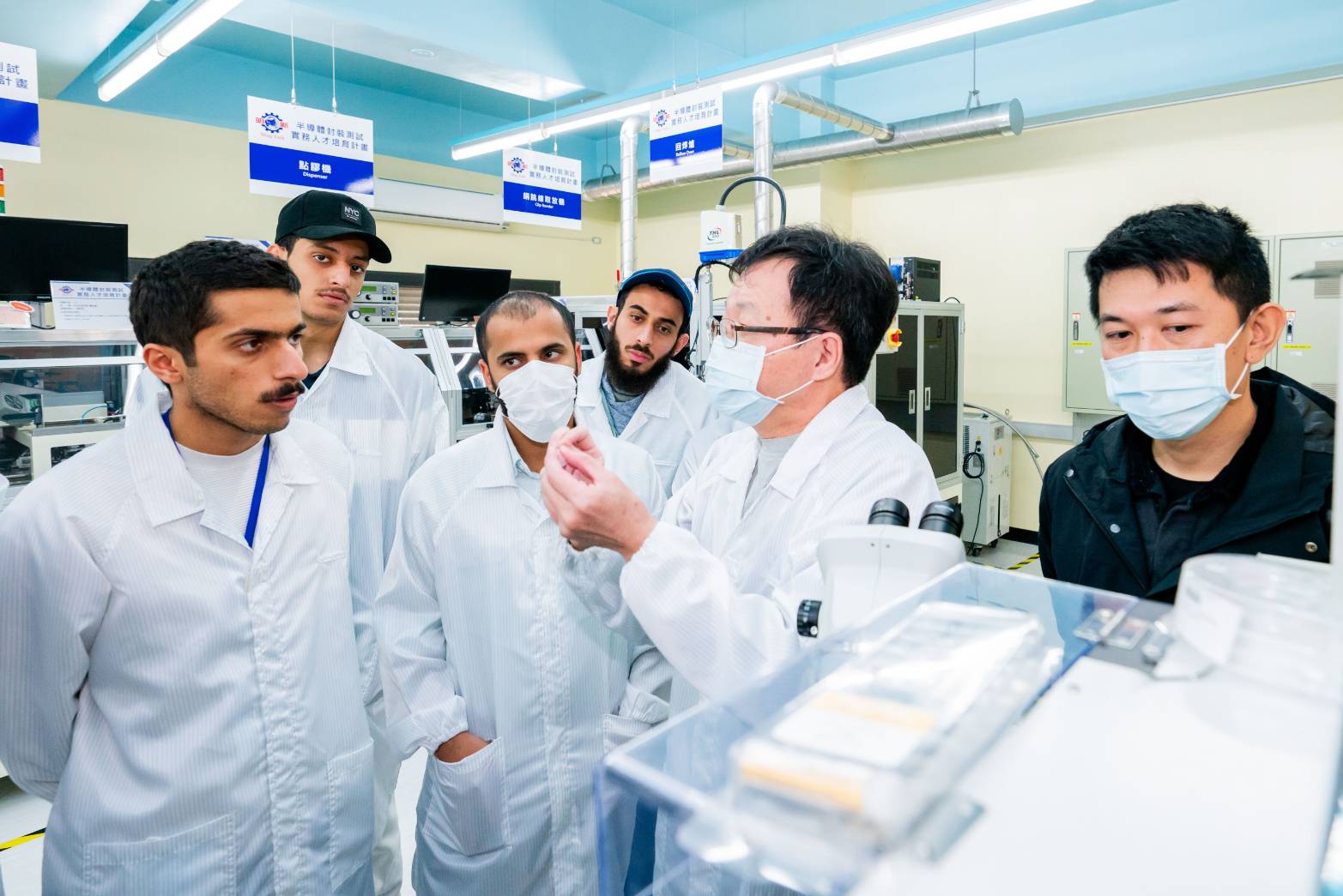 本次課程涵蓋樣品製備、光罩設計、光刻、封裝測試等多元技術,並操作光學顯微鏡與掃描電子顯微鏡等高端設備,學員還親手完成晶片封裝,學習成果豐碩。課程期間,更獲力成、美達科技專業業師支持,讓阿曼學員深入了解半導體產業的實務運作。