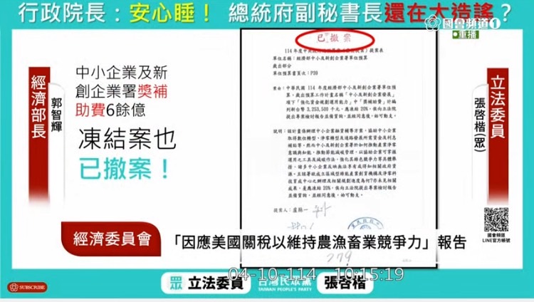 至於中小企業新創企業科技運用的2億元、中小企業新創企業的8億元,張啓楷說,更在當時就已撤案。