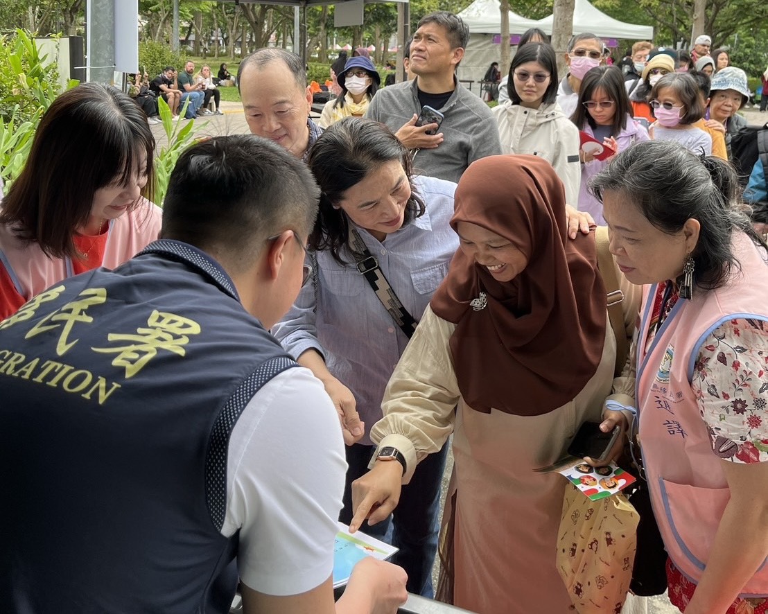 移民署北區事務大隊臺北市服務站昨(13)日參加由臺北市政府所舉辦的「2025 Eid-al-Fitr in Taipei開齋之約相遇臺北」活動,現場設立「移」番賞公益攤位,宣導入出國及移民法相關重要資訊及反詐騙,與穆斯林朋友們在大安森林公園共襄盛舉互道「Selamat Hari Raya Idul Fitri(中文譯:開齋佳節愉快)」。