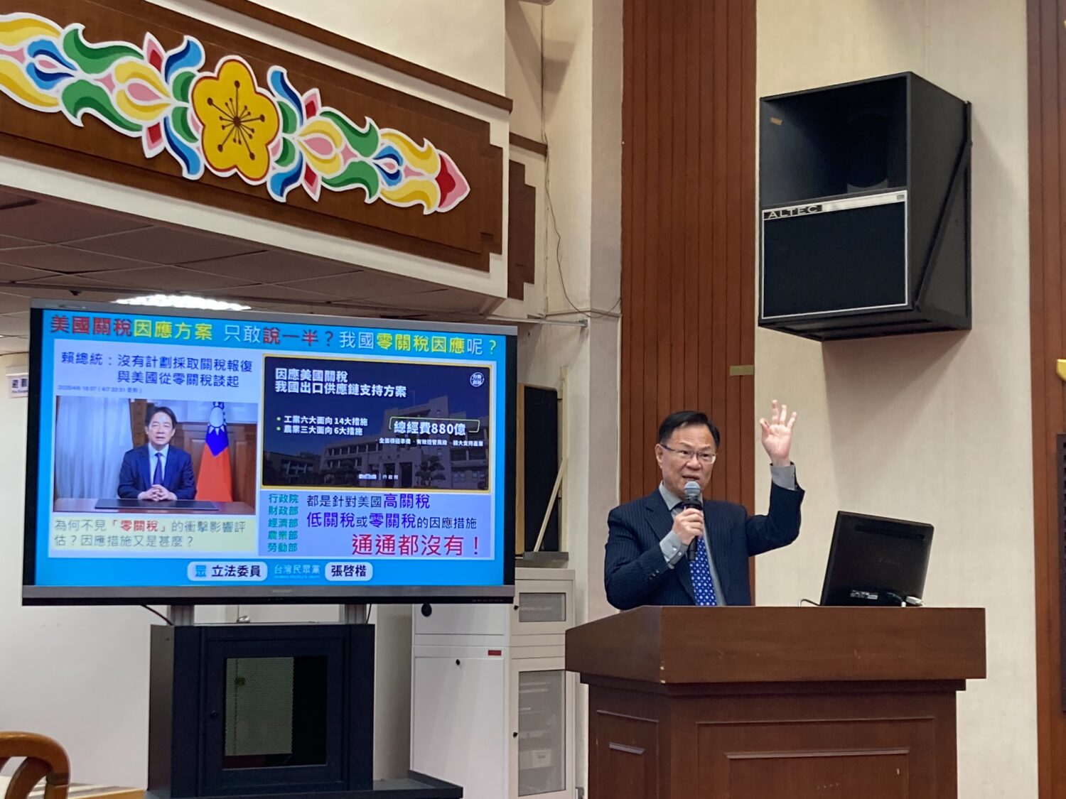 面對產業界憂心美國高關稅衝擊,張啓楷特別強調,中小企業將首當其衝,政府應將國內利益放在第一優先,爭取最大化的減免空間。他也呼籲行政部門儘速組成正式代表團赴美,展現積極交涉態度,而非僅止於視訊會議,才能真正捍衛台灣的經貿利益。