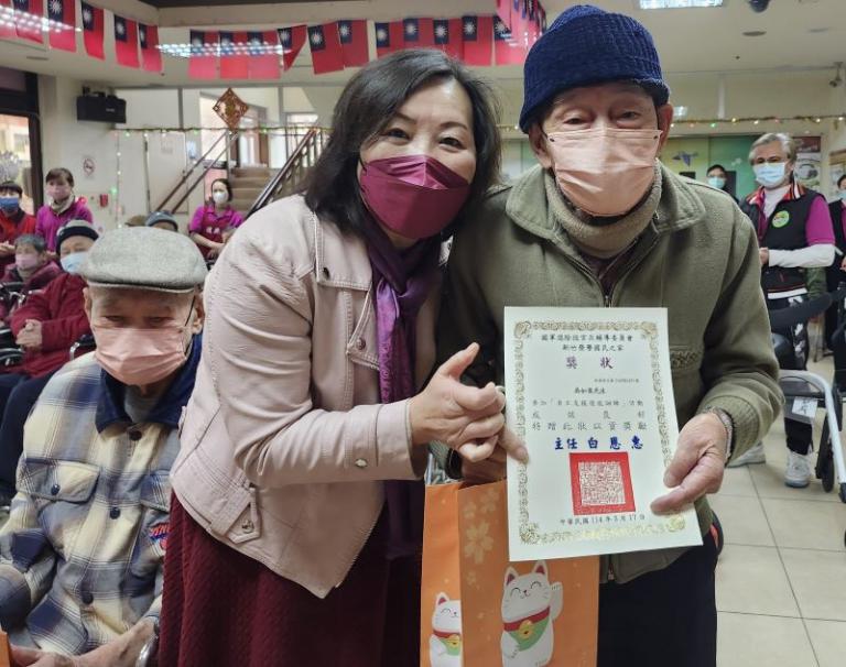 ▲白恩惠主任(中)親自頒獎給獲獎的吳伯伯。…