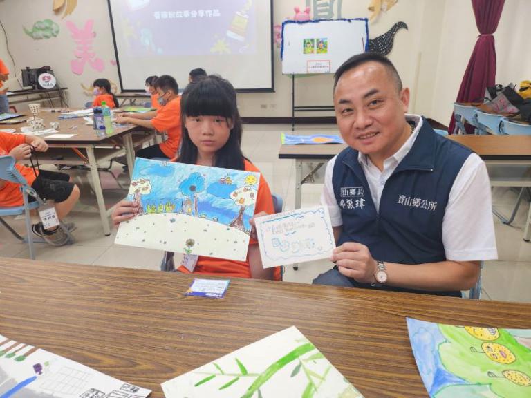 ▲鄉長邱振瑋強調圖書館是讓孩子們在書中尋…