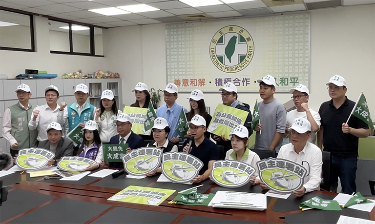 ▲民進黨團議員發起淘汰罷免六藍委行動。(…