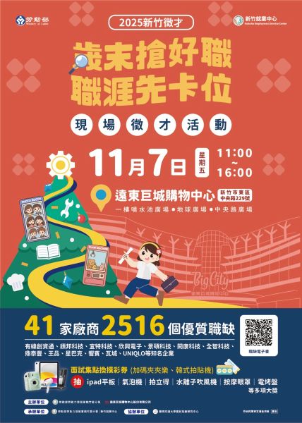 ▲新竹就業中心7日上午11時00分至16時於遠…