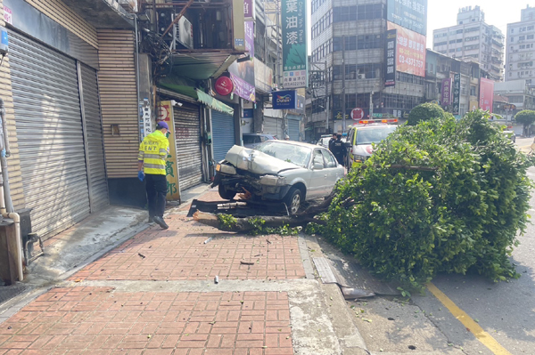 ▲桃園市中壢區環北路上,一部自小客自撞路…