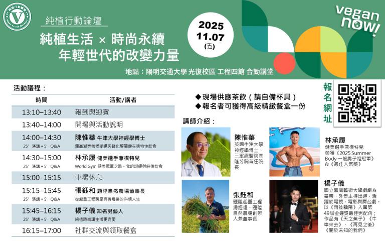 ▲「純植行動論壇」將於11/7 在陽明交通大…