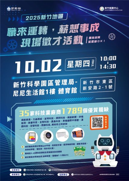 ▲️新竹就業中心10/2在竹科尼尼生活館1樓舉…