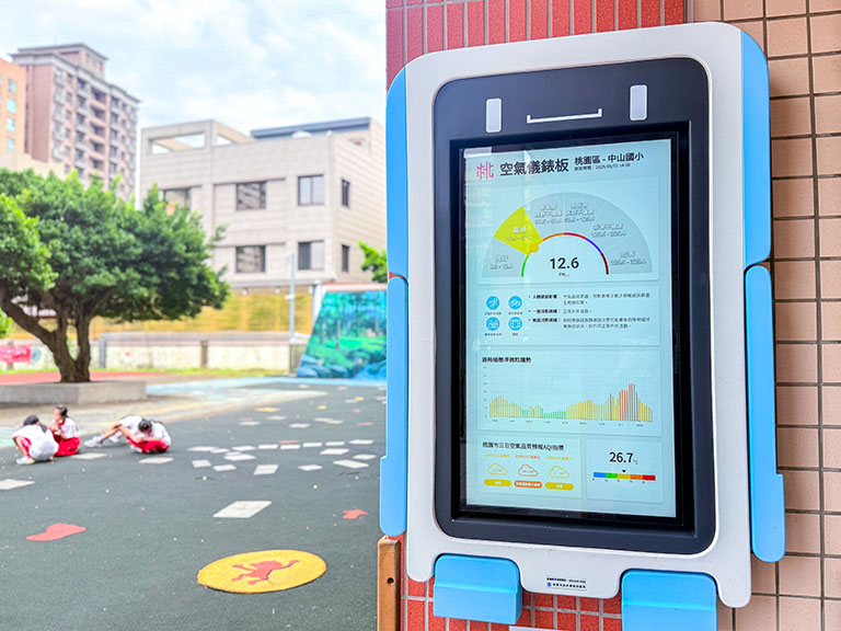 ▲桃市全國首創「校園空氣儀表板」,張善政…