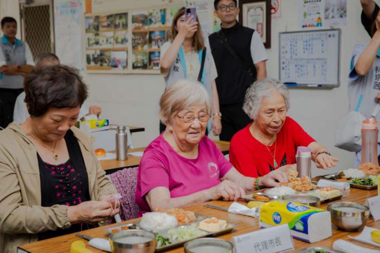 ▲據點長輩88歲彭何月娥奶奶(中間者)幾乎…