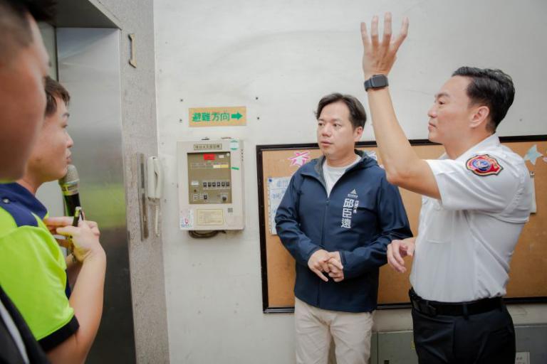 ▲代理市長邱臣遠與消防局長李世恭赴萬邦中…