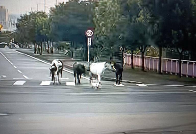 ▲大清早,中興路四段高鐵橋下發現有馬匹逛…