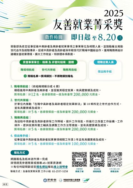 「2025友善就業菁采獎」徵件開跑 桃分署廣邀企業共創友善就業環境