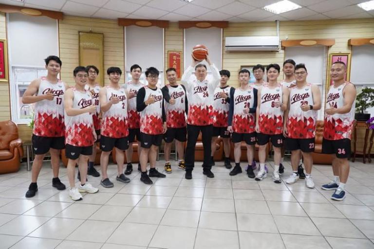 ▲竹市警局局長許頌嘉與籃球隊。 (圖/記者…
