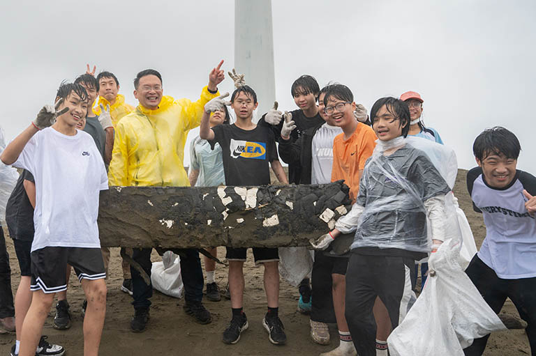 風雨也澆不熄的熱情 蘇俊賓偕千人草漯沙丘冒雨淨灘