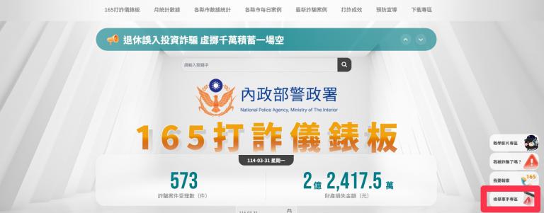 ▲165打詐儀錶板「百斬行動檢舉車手專區」…