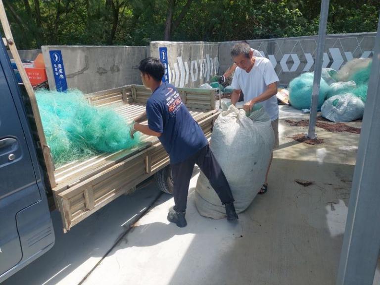 ▲漁民運送廢棄漁網。(圖/記者張建奎攝) …