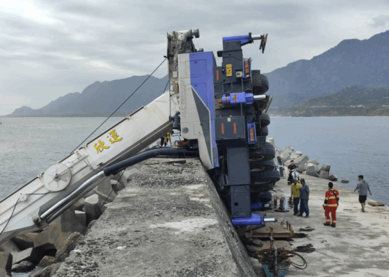 台東成功吊車翻覆造成1死1傷。翻攝畫面 …