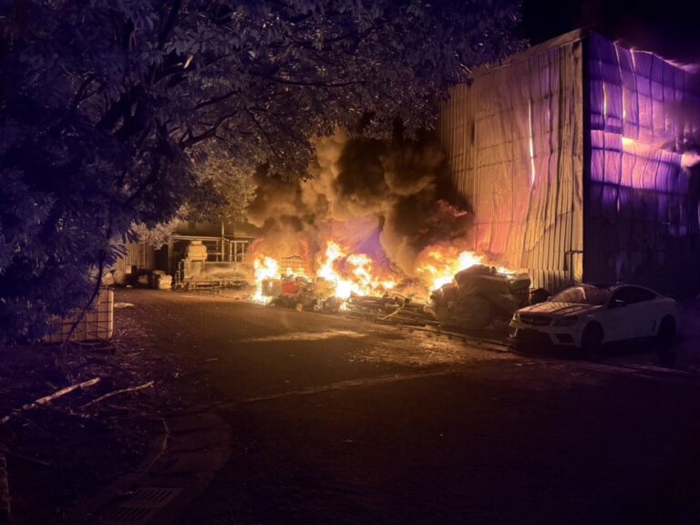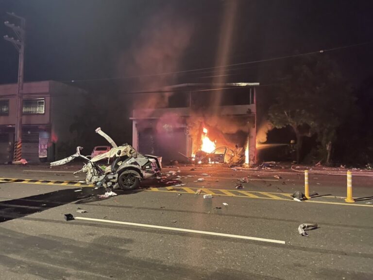 桃園市新屋區賓士車撞擊民宅起火車子撞爛…