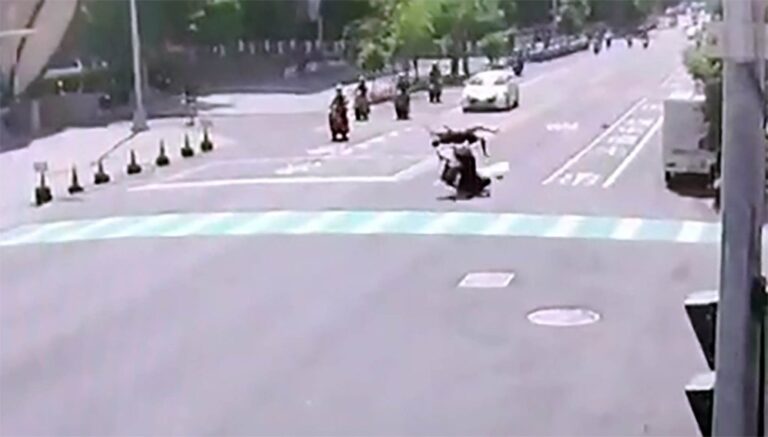 影/松山機場前大逆向!未禮讓行人+槽化線上行駛 目擊者:這車開的有點誇張