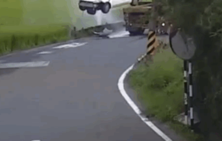 彰化縣警車停路邊處理車禍遭貨車擦撞。翻…