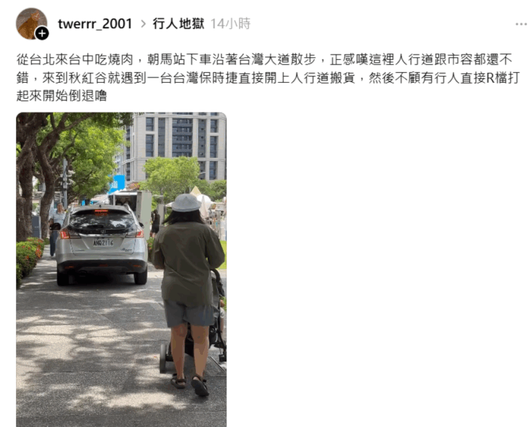 民眾直擊休旅車霸佔人行道 網友諷:台中日…