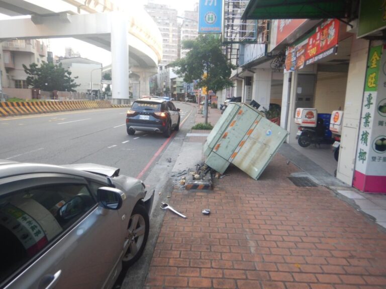台中自小客車撞歪路旁電箱,警方到場調查…