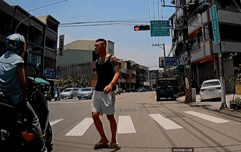 白色自小客車駕駛闖紅燈還下車嗆外送…