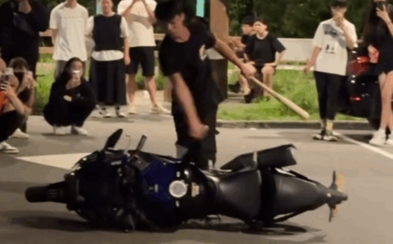 機車逆向被撞空翻一圈落地。翻攝畫面 【…