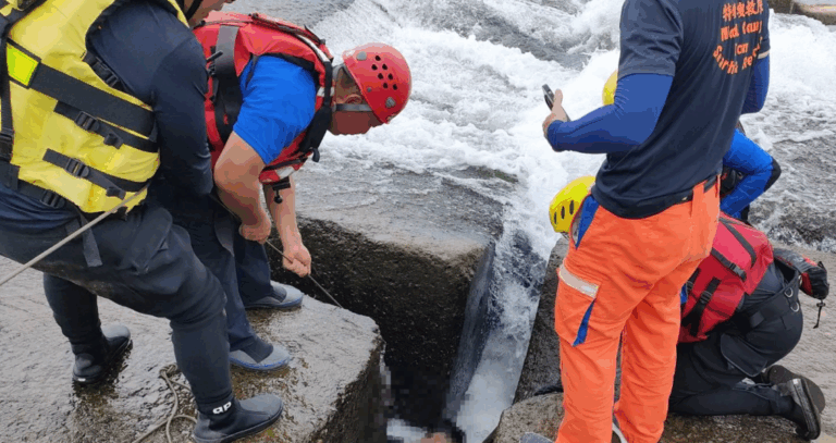 消防隊員於消波塊間尋獲溺斃的越南移工。…
