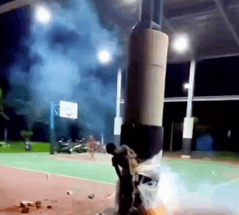 少年被綁在籃球場圓柱腳底還被丟鞭炮狂炸…