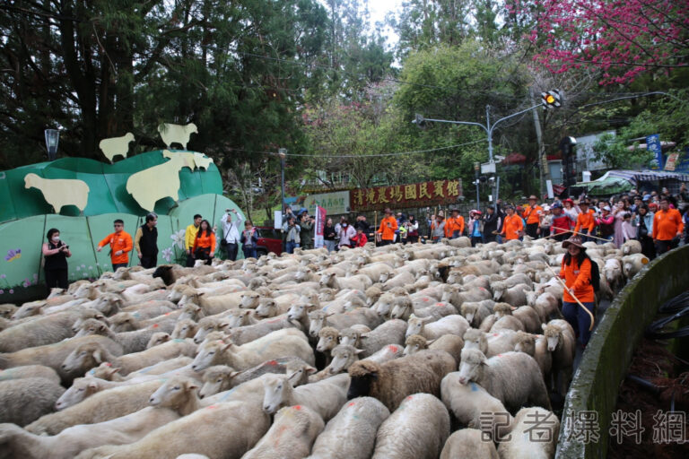 ▲清境奔羊情人節,114對綿羊在櫻花盛開的…