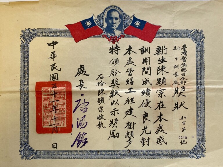圖:陳顯宗前輩獲新生訓導處頒發獎狀,獎勵…