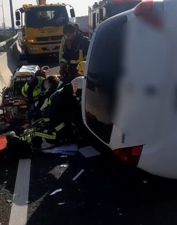 疑未注意前方車流回堵 小貨車駕駛追尾2車大腿骨折夾困車中