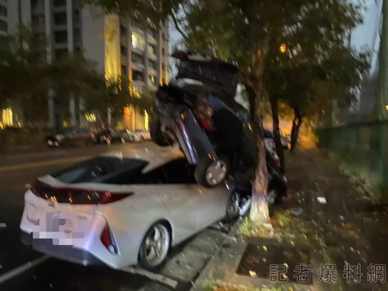 台中北屯驚傳離奇車禍 轎車失控騎上停放車…