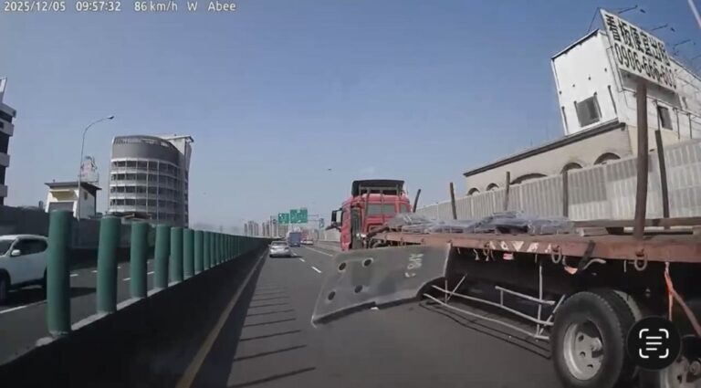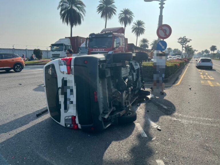 淡金公路拖板車失控撞路燈電線桿並衝進對…