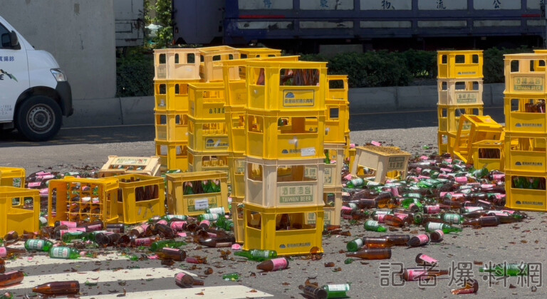 更新/高雄漁港路大車事故「噴裝」!大量酒瓶掉落路面碎滿地