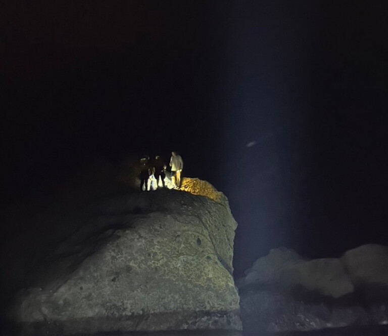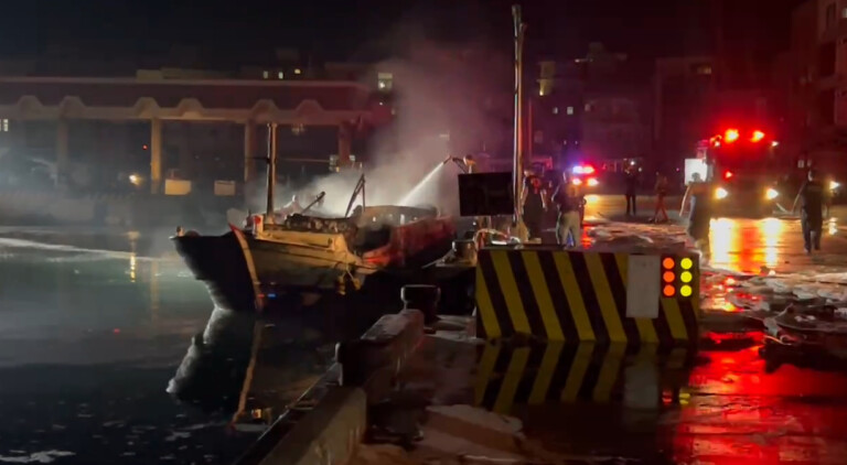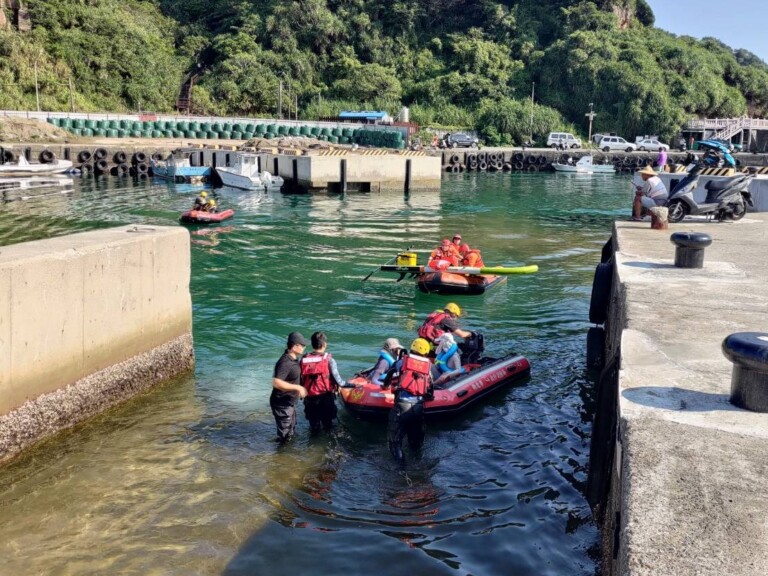 ▲消防人員自水尾漁港出動橡皮艇展開搜索救…