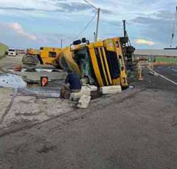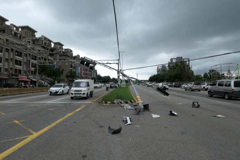 疑超載煞車失靈闖禍! 台中沙鹿向上路6段貨車撞斷號誌桿追撞小貨車