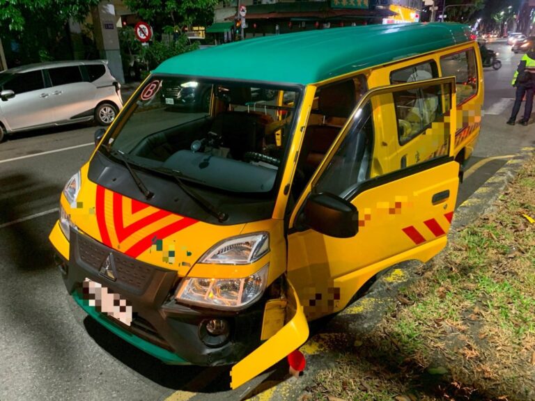 台中市豐原區娃娃車自撞安全島。翻攝畫面 …